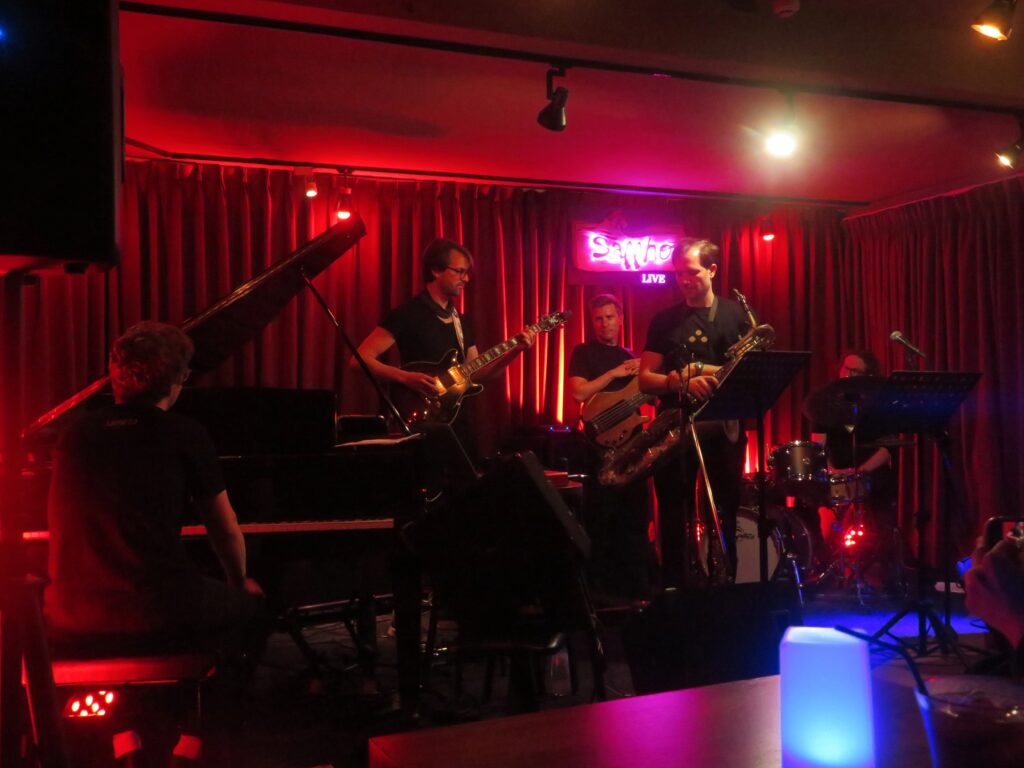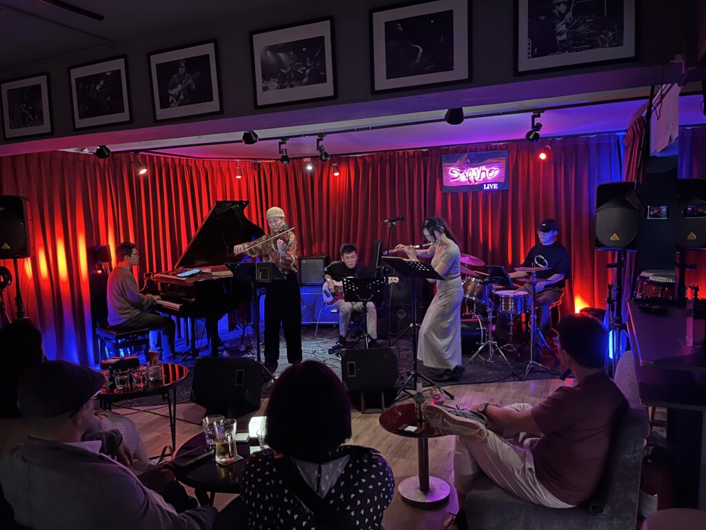 【Sappho】島さんのお誘いで、Resonance5というフルートとバイオリンのツインリードによるクインテットのライブを観覧することができました。ゴリゴリくるビートとか、難解な音使いとか、とかくマニアックな音楽になりがちなジャズとは大きく異なる、心地よく和めるアンサンブル。海外修行してこられたメンバーも多く(僭越ながら)演奏レベルは高かったです。店員もお客もお互いの気遣いが感じられ、演奏者との一体感もあって、居心地が良い。普段、ジャズをあまり聴かない同行の日本からの友人たちも大変喜んでました。旅行仲間を誘っての夜遊びにも最適なお店かと。タイミング良ければ、ライブ後セッションで島さんとの共演も実現できるかも。