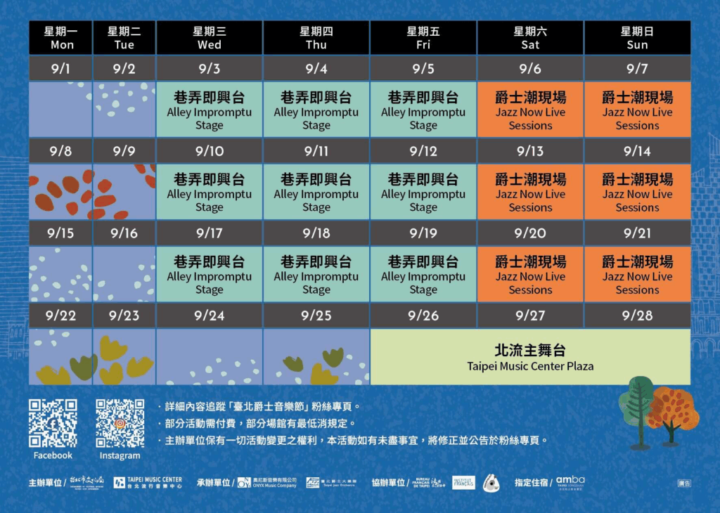 【島】ジャズに特化した地域イベントは、台北市と台中市の行っているジャズフェスティバルがあります。どちらも毎年10月に、1ヶ月ほどのスケジュールで屋外のオープンステージ、大小様々なライブスポットなどで、国内外のビッグバンドやコンボバンドを交えて行う大規模なものです。日本からの客演バンドが演奏することも少なくありません。去年の台北のジャズフェスティバルには、エリック宮代が参加していました。